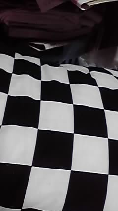 2番目からはモノクロチェックの抱き枕、1番上はインテの土産でハーツ本2冊と